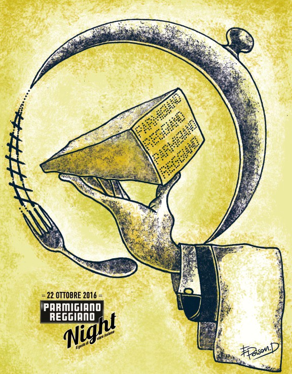 A tutti i consumatori che si ritroveranno in occasione della “Parmigiano Reggiano Night”, i ristoratori consegneranno un gadget del Consorzio. Si tratta di un”bavaglio” con un’originale illustrazione dell’evento realizzata dalla giovane designer parmense Elena Gardini (Ellipoison Design): i clienti potranno indossarlo e, con questo, scattarsi una fotografia da condividere, poi, sui propri canali social utilizzando l’hashtag #PRnight2016
