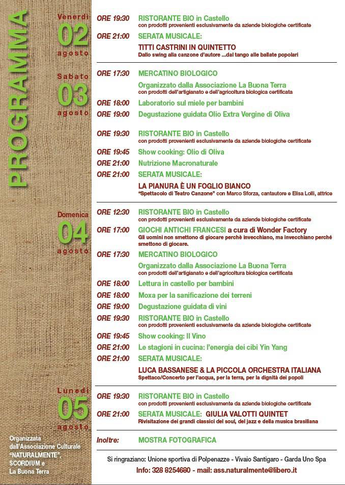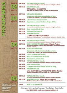 POLPENAZZE DEL GARDA (BS) – 2/5 agosto 2019 – Il castello di Polpenazze del Garda ospita la 21esima edizione della BioFesta, tradizionale appuntamento dell’estate gardesana dedicato alle produzioni biologiche dei territori bresciani e lombardi. Quattro giorni di enogastronomia, produzioni tipiche, degustazioni, musica e cultura all’insegna della filosofia bio ed eco-compatibile.