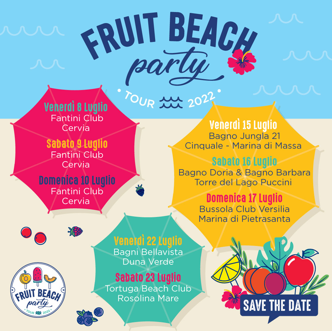 Come nel caso di “Fruit Beach Party”, che vede partecipare sei aziende di rilievo, unite nel rendere l’ortofrutta la grande protagonista dell’estate. Al tour hanno aderito Berryway, Lamponi e Mirtilli; Citrus L’Orto Italiano, Limone verdello; Pink Lady®, Mela; Solarelli, Pesca Nettarina di Romagna Igp; Metis®, Susina; Moncada®, Pomodori Datterino, Ciliegino e Camone®.