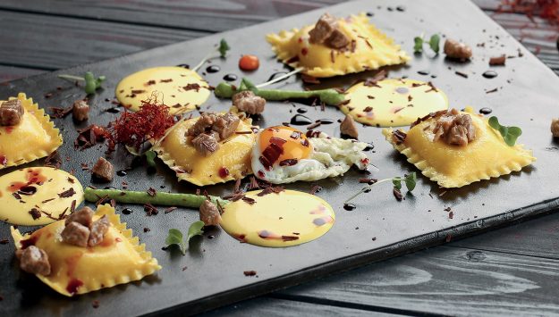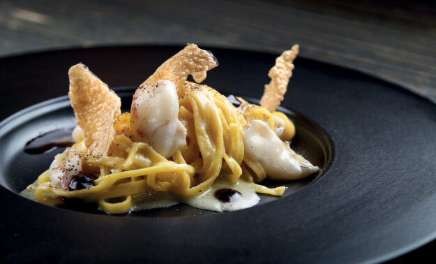 INGREDIENTI per 4 persone 16 Panciotti con capesante e gamberi dei mari del Nord Divine Creazioni Surgital torcione di foie gras congelato tartufo nero pregiato q.b. jus di vitello salsa foie gras (scaloppa…