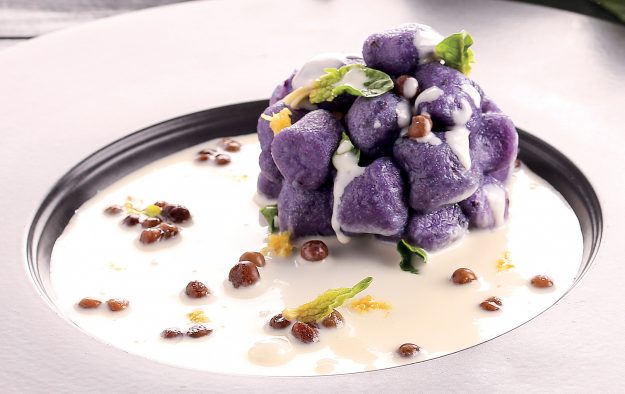 INGREDIENTI per 4 persone g. 800 di Mammoli di patata viola Divine Creazioni Surgital, g. 120 di roveglia, g. 80 di spinaci, 1 carota, 1 costa di sedano, 1 cipolla (per il brodo),…