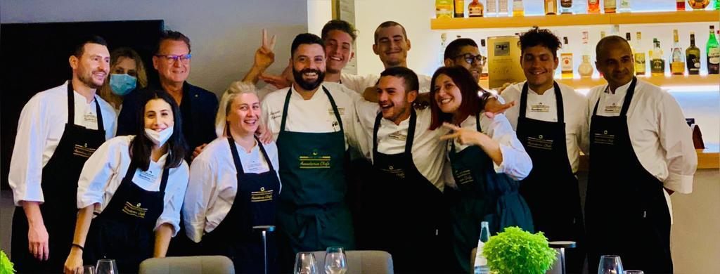 Nei pranzi didattici di Accademia Chef’s il bello, oltre al menu, agli allievi e alle allieve che si trasformano in una vera e propria brigata di cucina condotta dallo Chef Resident Massimo Polidori, è che, come a teatro, gli ospiti si presentano e raccontano di sé. Alla fine del pranzo ci conosciamo tutti, ci scambiamo biglietti da visita, ora si può, e ci diamo prossimi appuntamenti ai quali non mancare. Progetti che potrebbero realizzarsi e varie ed eventuali.
