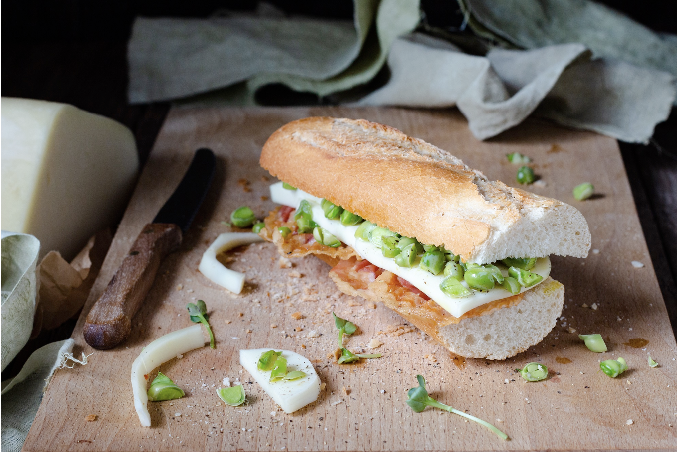 Baguette primavera con fave, pancetta e Marzolino di pura pecora, il formaggio della transumanza