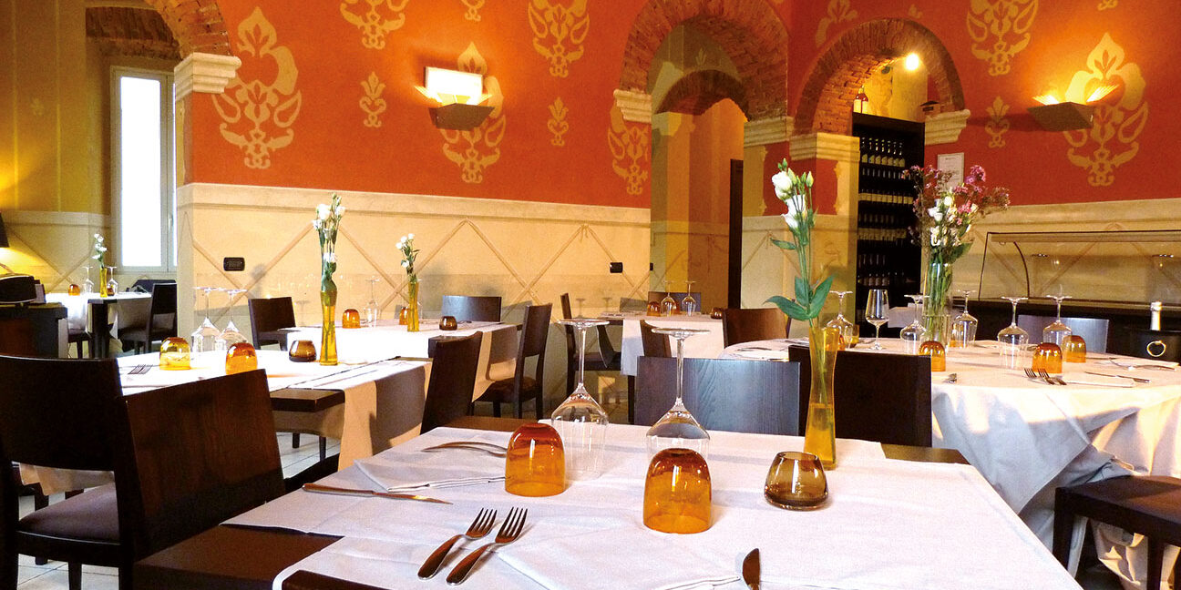 Il tavolino apparecchiato appena si supera l’ingresso del piano terra è una piccola applicazione d’arredo voluta da Sabina per dare il primo benvenuto agli ospiti che dovranno salire, però, al primo piano per godersi appieno il locale. Luci soffuse, tetto in legno, archi in pietra e mise en place elegante. Il colpo d’occhio restituisce l’immagine di un ristorante importante ma allo stesso tempo accogliente. La sala è di fatto il regno della patron di questo ristorante romantico, Sabina, sempre sorridente, che si muove con leggerezza e discrezione da un tavolo all’altro del ristorante per non far mancare mai nulla ai propri ospiti.