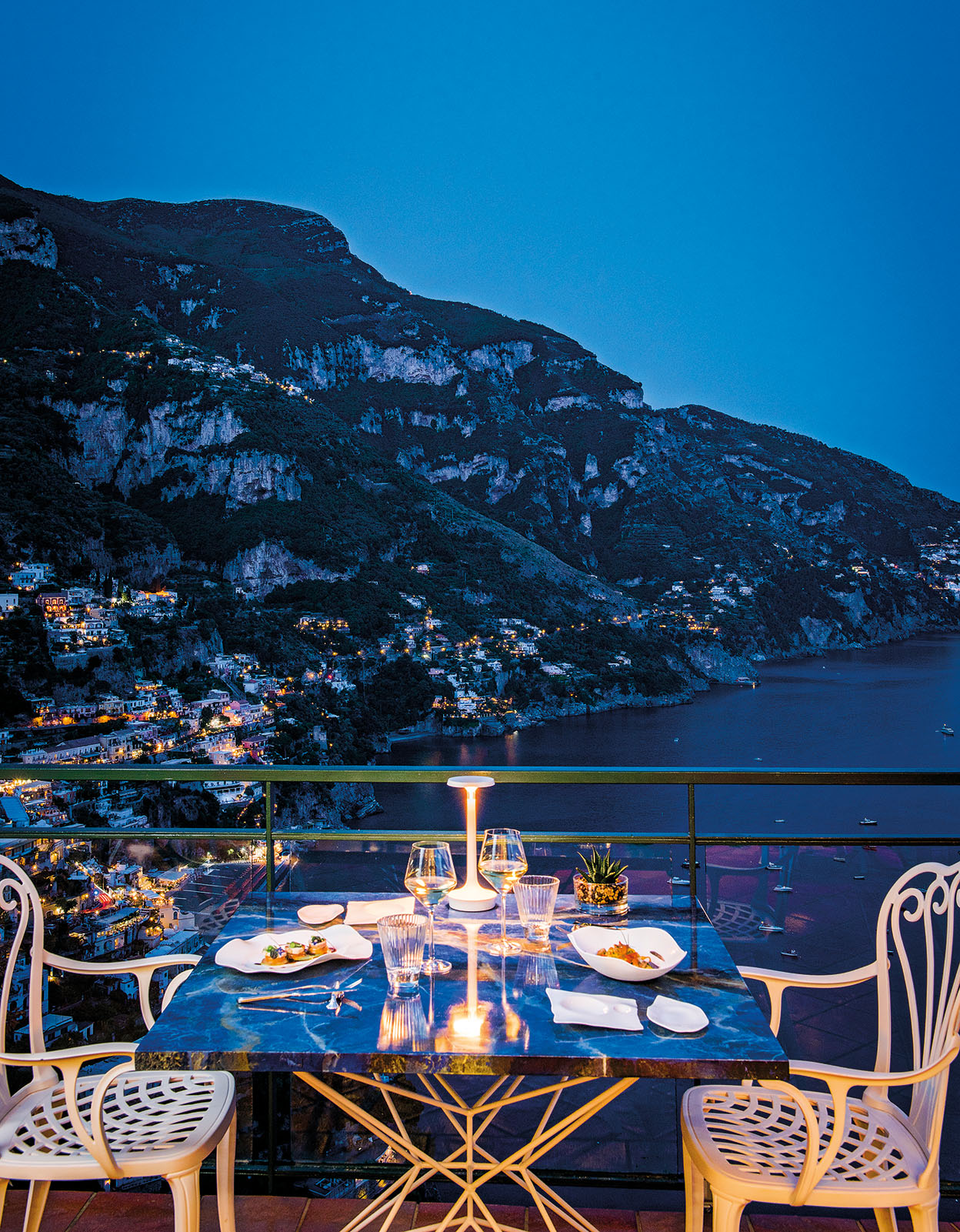 Tra il fascino e la singolarità di una simile struttura non poteva mancare una cucina di classe, frutto di grande creatività ed estro che lo chef, Luigi Tramontano, traduce quotidianamente in piatti ricchi di colori e sapori mediterranei. All’interno, il ristorante gourmet “La Serra”, con il suo numeroso staff: 18 collaboratori in cucina e altre 15 persone che si occupano della sala nei loro diversi ruoli, per un massino di 35-40 coperti. Luigi è artefice di una cucina che non tradisce le sue origini e le esperienze fatte a fianco di grandi nomi. Una grande cucina d’autore, pensata e realizzata da “un ragazzo che tenta di fare lo chef”, come lui ama definirsi. Originario di Gragnano e figlio d’arte, come scuola sceglie l’alberghiero di Vico Equense e in più, durante l’estate, inizia a lavorare nel locale di famiglia e in altri locali della zona. Terminati gli studi, il Quisisana di Capri segna il vero avvio della carriera di Luigi, al fianco di Nazareno Menghini, al quale si affeziona particolarmente seguendolo poi anche al De Russie di Roma. Felicemente avviato ad una appagante carriera di chef, due anni dopo decide di tornare in costiera e riesce a realizzare un altro grande sogno, quello che forse a quel tempo, tutti i giovani chef della Campania avrebbero voluto raggiungere: andare a lavorare nel famoso ristorante Don Alfonso 1860, a Sant’Agata sui Due Golfi, il primo grande ristorante di pregio, che in quel periodo sovrastava qualsiasi altro nome della ristorazione del sud Italia. Rimane al Don Alfonso per 5 anni, arrivando ad essere secondo di cucina, poi una piccola parentesi al Relais Blu, di Massa Lubrense e un successivo passaggio a Villa Cimbrone a Ravello, dove, a sorpresa, soltanto due mesi dopo il suo ingresso, il locale riceve la prima “Stella Michelin”. Lascia Villa Cimbrone e si sposta al Grand Hotel Excelsior Vittoria di Sorrento. Fortunatamente la stella Michelin lo segue quasi subito e per i successivi quattro anni Luigi miete un successo dopo l’altro. Nel 2017, con un altro salto di qualità, decide di lasciare Sorrento per passare all’Hotel Le Agavi di Positano, dove tutt’ora dirige con successo, sia il ristorante gourmet che il “Remmese”, altro ristorante dell’hotel, conosciuto per la sua cucina della tradizione napoletana e della costiera Sorrentina e Amalfitana, situato proprio sulla spiaggia, a disposizione degli ospiti che lo possono raggiungere attraverso un’esclusiva discesa a mare, dotata di ascensori privati. Il ristorante è aperto anche alla clientela esterna, costituita da numerosi naviganti e turisti che invece lo raggiungono via mare, in quel punto della costa dove panorama e atmosfera non mancano.