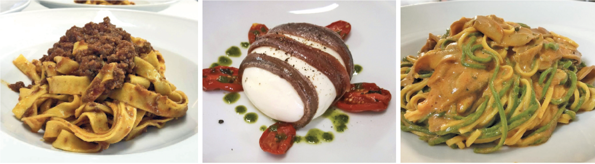 Tornando al cuore del Ristorante Anna e quindi alla sua cucina, tra le proposte troviamo i classici primi piatti come paglia e fieno ai funghi; le tagliatelle, asparagi e salsiccia; i tagliolini prosciutto e piselli e le classiche tagliatelle al ragù. Tra le paste ripiene sono da segnalare i tortelli di patate al formaggio di fossa; i tortelloni panna e prosciutto e i classici cappelletti sia nella versione in brodo che al ragù. In autunno, a seconda della disponibilità, troviamo abbinamenti con il tartufo e con i funghi come i cappelletti in brodo e tartufo o le tagliatelle ai porcini.