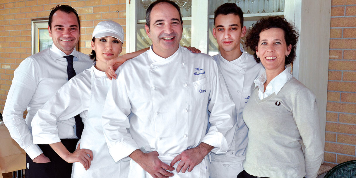 Siamo in Maremma, sul lungomare di Follonica, popolato tratto di costa che fa da apripista alle bellezze marine dell’Argentario. Qui, in un moderno e accogliente locale realizzato interamente in legno, Mirko Martinelli insieme alla moglie Valeria gestiscono l’Oasi, uno dei più noti locali del litorale grossetano, dove si mangia esclusivamente pesce “pescato”. Privilegio sempre più raro, che però, quando si ha la fortuna di conoscere, non si dimentica più. Nei piatti è sempre una festa di colori, profumi e sapori, nelle intenzioni di Mirko, artefice della cucina, cotture minimali con poca intrusione nel pregio della freschezza del prodotto trattato. Il percorso è quello già visto in altre occasioni: sapori di una volta, piacevolmente riproposti e interpretati in chiave più moderna e salutistica. Fermezza e convinzione nel voler trasmettere messaggi di sapore personali ma sempre molto riconoscibili. Un momento di relax gastronomico in un ambiente anche elegante, nella sua semplicità, con il mare a pochi passi dalla luminosa veranda proiettata sulla spiaggia, confortati da un calice di bollicine, italiane o francesi di cui la carta dei vini e fornitissima.