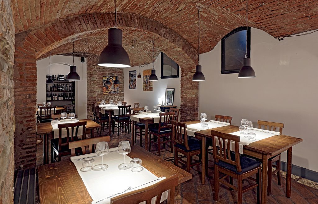 I tavoli, apparecchiati con semplicità ed eleganza essenziale (per fortuna non mancano le tovaglie e i tovaglioli di stoffa, questi grandi desaparecidos nei ristoranti fashion e di avanguardia) sono il frutto del lavoro artigiano di Nicola Bonettini, di Zola Predosa.Un vivace ma educato swing jazz fa da sottofondo musicale e pare quasi provenire dal bellissimo giradischi anni ’70 situato all’ingresso del locale, su cui è piazzato un ottimo 45 giri di Fred Buscaglione. Il tutto va a comporre un’atmosfera intima e calda, ideale per una serata a due, ma che si presta perfettamente anche a un incontro di lavoro o una cena tra amici.