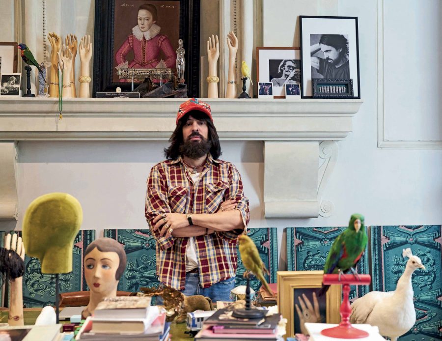 Sarà probabilmente per questo che la Gucci Osteria (understatement vizioso, perché la qualità è al 100% gastronomica) giunge come una novità tanto attesa: il luogo dove la cucina di Massimo Bottura si rende finalmente accessibile al grande pubblico, anche grazie all’apertura ininterrotta, dalla mattina fino a sera, con la cucina sempre attiva nelle ore pomeridiane. Costumi internazionali per un ristorante che si affaccia su piazza della Signoria, con il via vai dei turisti a fendere il sentimento di meraviglia. Dentro il trecentesco palazzo della Mercanzia hanno sede gli uffici del gruppo, fondato a Firenze nel 1921 da Guccio Gucci, già portiere al Savoy di Londra; ma nel 2011 vi è stato insediato un museo relativo alla storia della moda, che nel 2017 l’amministratore delegato Marco Bizzarri, compagno di banco di Bottura dal 1976 al 1981, nell’ultima fila in fondo a destra, ha deciso di ripensare in chiave interattiva, affidando la regia al direttore creativo Alessandro Michele, (foto a pag. 44) coadiuvato da artisti visivi quali Jayde Fish, Trevor Andrew e Coco Capitán. Non solo vestiti e accessori, vintage e moderni, ma istallazioni video, opere d’arte, affreschi, documenti e artefatti cortocircuitano passato e presente lungo i due piani della Galleria, il cui biglietto va per metà a finanziare opere di restauro in città. Mentre il piano terra è consacrato a bottega, con la vendita di pezzi unici concepiti appositamente per lo store, si tratti di vestiti o cuscini fatti a mano, e per l’appunto a ristorante.