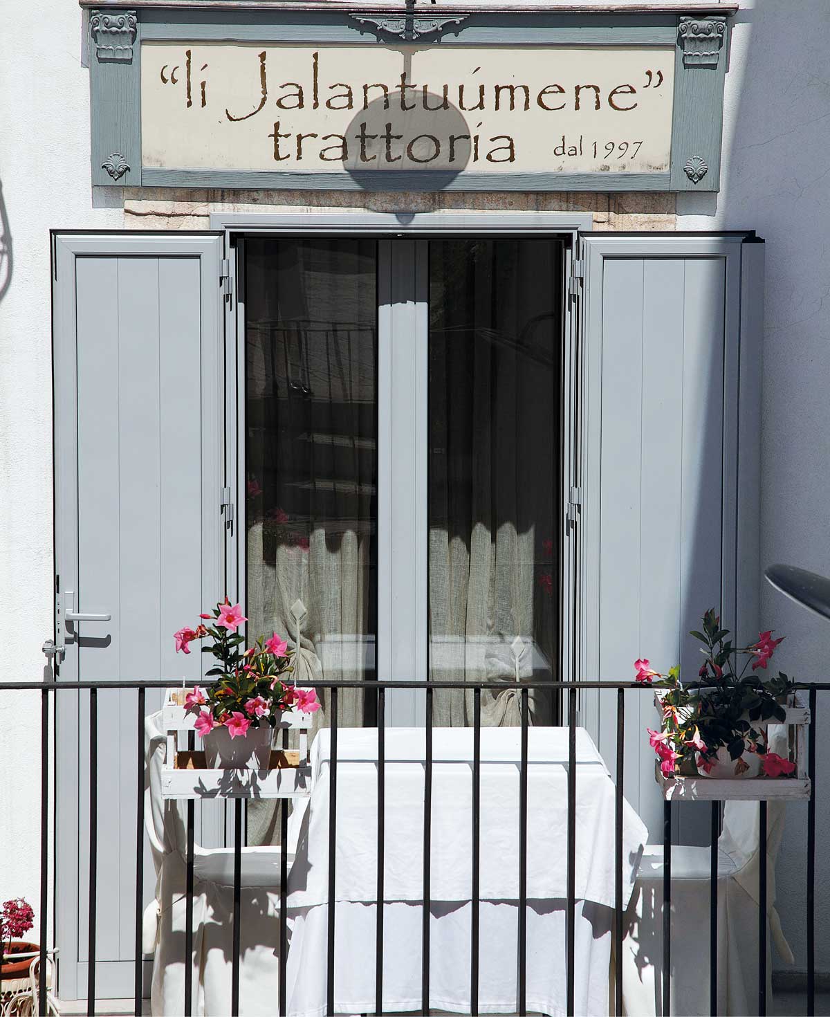Più recenti sono invece le peregrinazioni che portano molti gourmet a raggiungere il centro storico e quel Santuario, per poi accomodarsi ai tavoli del piccolo dehors o nei curatissimi interni del ristorante Li Jalantuùmene, stiloso scrigno contenente i sapori e i colori della cucina che Gegè Mangano, chef di empatica giovialità, dedica con appassionato rigore e attuale freschezza alle radici di una tradizione che dal territorio trae una ricchezza immensa di prodotti ed emozioni.