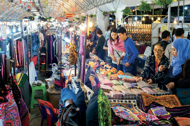 Di sera, Chiang Mai indossa il suo abito più bello e va in scena il Night Bazaar. È un mercato enorme che si trova nel cuore della città, sulla Klan Chan Road, tra Tha Pae e Sri Donchai Road. Il mercato è famoso per l’artigianato locale ma si trovano esposti anche gioielli, giocattoli, stoffe di lino e seta, abbigliamento, accessori, oggetti ad alta tecnologia. Il clou è rappresentato dai prodotti provenienti dal nord della Thailandia e dai paesi limitrofi, in particolare quelli associati con le tribù delle montagne. In poche parole si può trovare di tutto, non ultimo dell’ottimo street food.