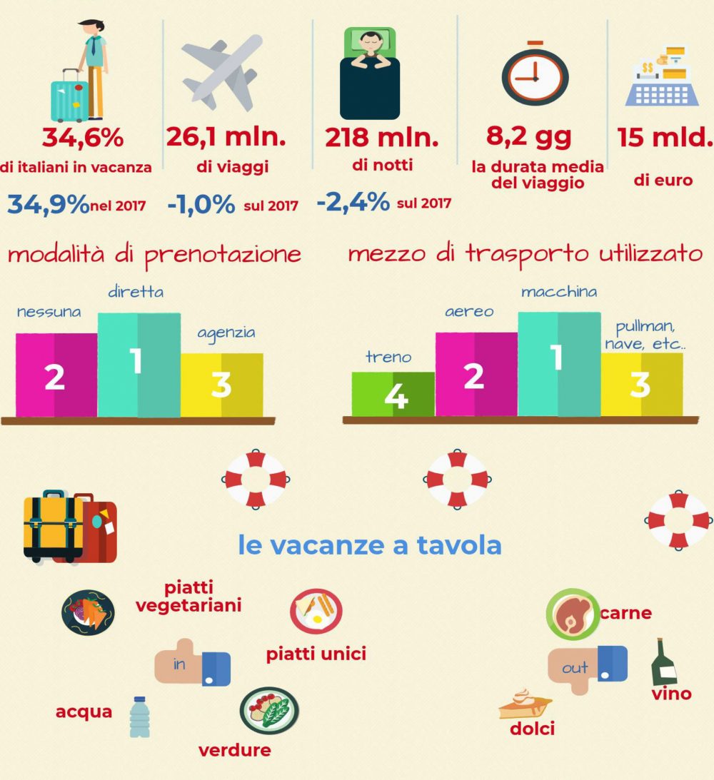 La durata media delle vacanze sarà di 8,2 giorni in flessione rispetto al 2017, quando fu di 8,4 giorni.