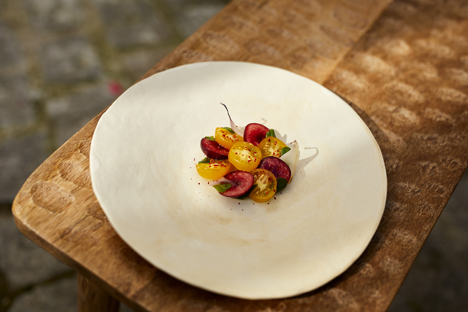 Il suo stile si distingue per una sapiente miscela (non fusion!) di ispirazione africana, nutrizione giapponese e solide basi delle tecniche francesi.