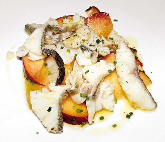 Ingredienti per 4 persone: 1 filetto di baccalà dissalato e tagliato a fettine sottili 4 pesche bianche erba cipollina q.b. tagliata dl. 1 di olio extravergine di oliva Pepe q.b. e sale Preparazione:…