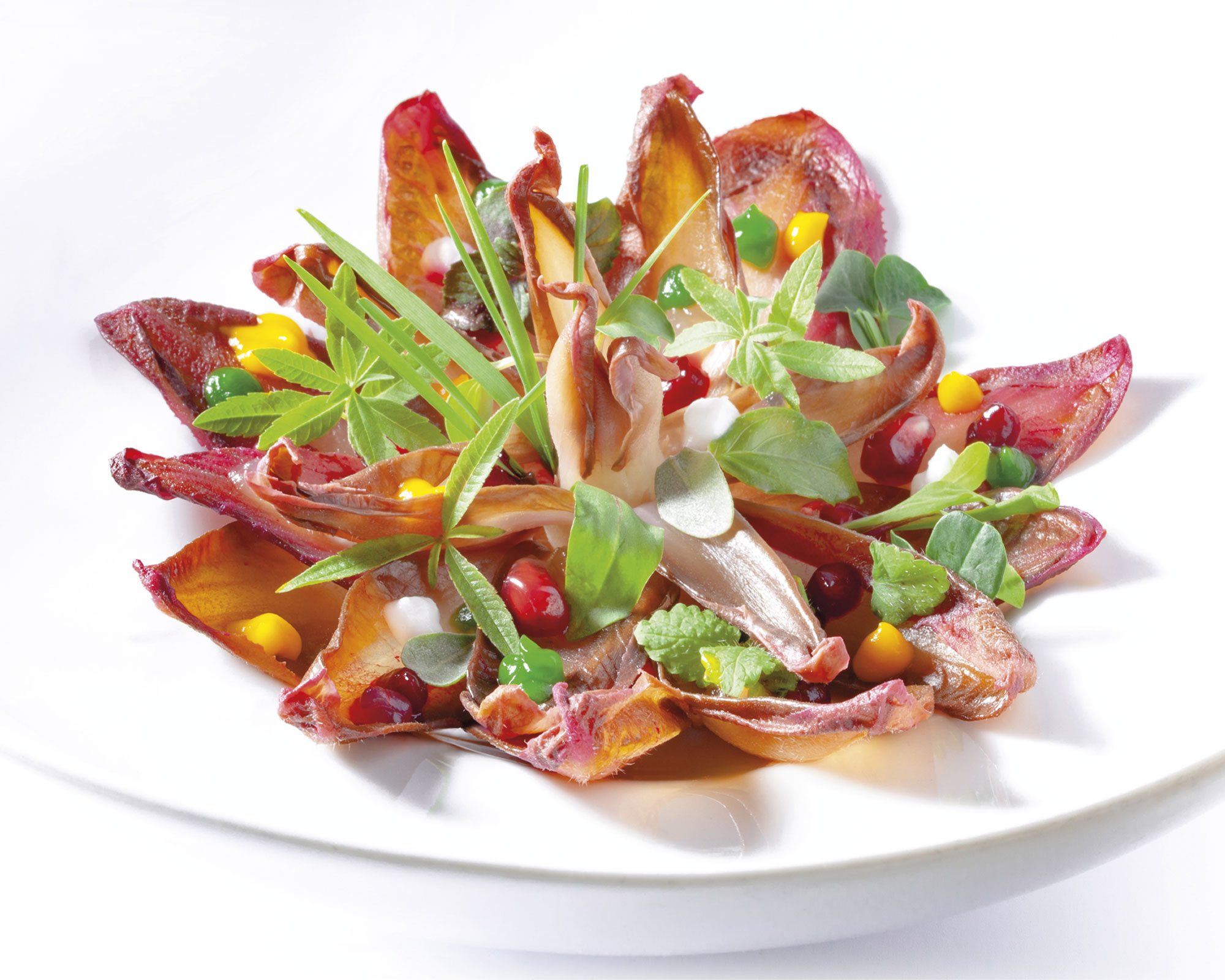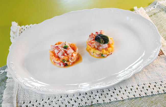 Gambero viola e insalata russa del ristorante Ancòra di Cesenatico INGREDIENTI Gambero viola: • 2 gamberi viola per piatto, crudi, conditi con olio, sale e lime. Aggiungervi sopra senape in grani e caviale.…
