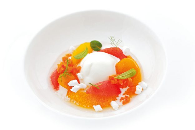 INGREDIENTI per 4 persone 1 pompelmo rosa 2 clementine 2 arance 2 carote erbe aromatiche meringhe Per il gelato alla lavanda ml. 500 di latte ml. 100 di panna g. 100 di zucchero…