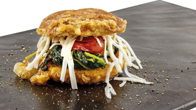 INGREDIENTI 4 fette di pane g. 350 di Cicoriella Selvatica di Campo Spirito Contadino g. 100 di Datterini Cirio Alta Cucina dl. 2 di brodo vegetale 2 uova g. 100 di scaglie di…