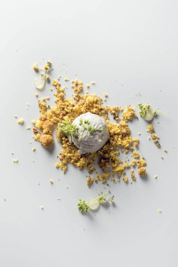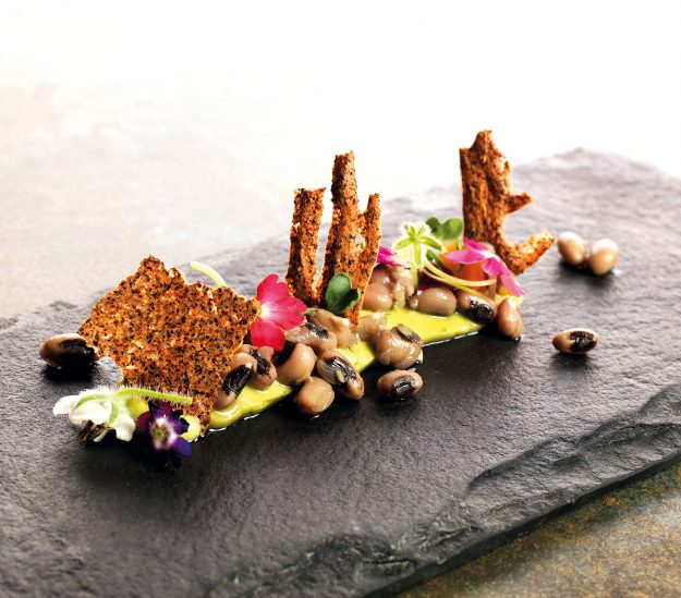 INGREDIENTI per 4 persone Per i fagioli: g. 60 di crema di avocado, g. 60 di fagioli saltati, g. 8 di marmellata dolce di melocotogno, g. 8 di terra di grani, g. 4…