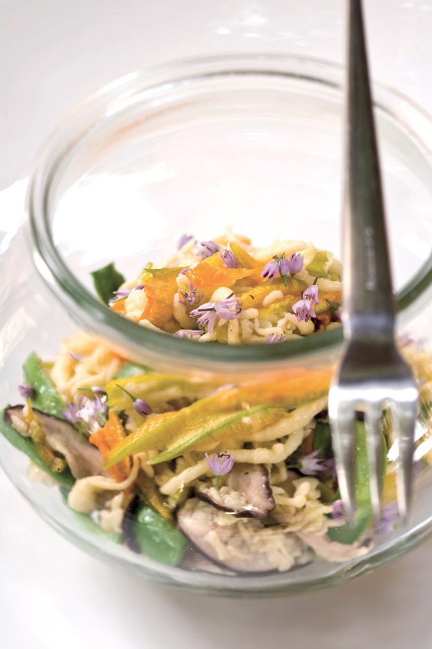INGREDIENTI Per i girini 4 uova g. 150 di farina 00 Per le verdure g. 120 di zucchine piccole g. 80 di funghi porcini 8 fiori di zucca Per il condimento formaggio caprino…