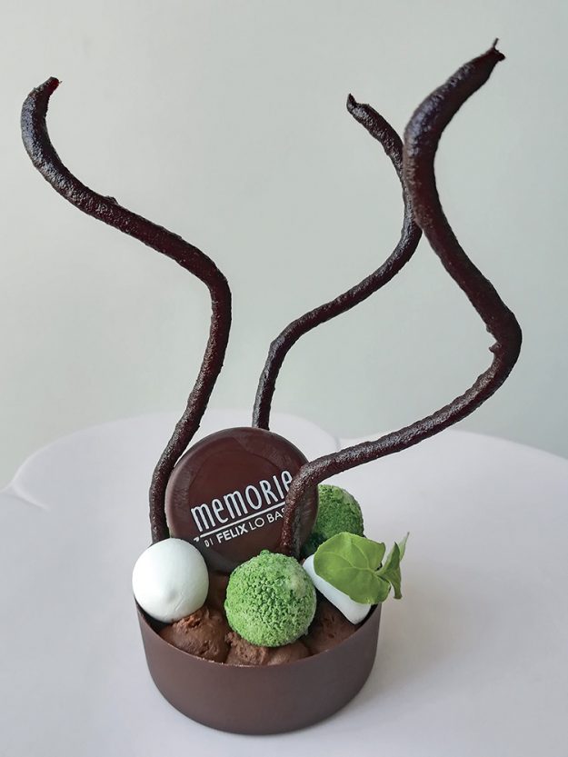 INGREDIENTI Per la mousse di melanzane: 4 melanzane (per g. 125 di purea), g. 40 di meringa all’italiana, g. 25 di cioccolato bianco Valhrona Opalis 31%, g. 2 di gelatina in fogli, g.…