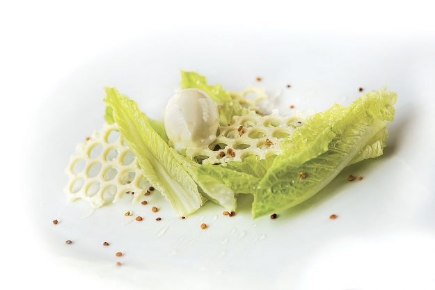 INGREDIENTI • Cuori di lattuga romana • miele d’acacia • polline • cioccolato bianco “Ivoire” di Valhrona • olio extravergine del Garda Ca’ Rainene Classico Per il gelato al miele • g. 350…