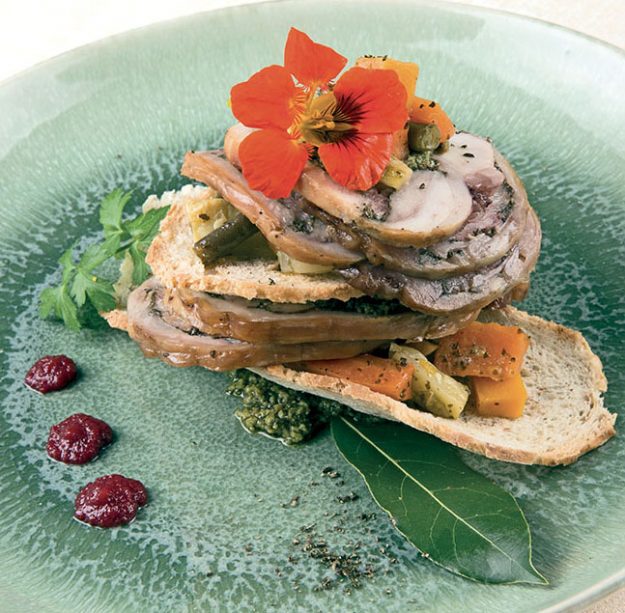 INGREDIENTI per 4 persone • 1 gallina Grisa della Lessinia • rosmarino • aglio • sale • fieno di montagna • lattughe miste Per il brodo di montagna: • brodo di Grisa •…
