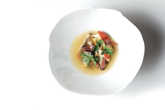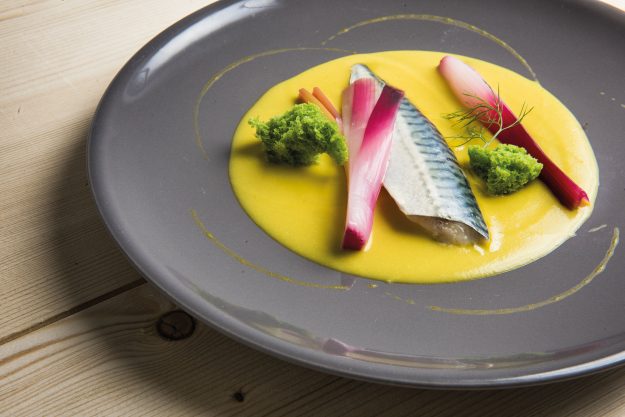 Il mare e la montagna. Sapore raffinato che nasce dalla semplicità. Protagonisti del piatto (antipasto) lo sgombro e lo zafferano delle Dolomiti. Lo sgombro, pesce azzurro, popolare e spesso poco considerato, viene prima…