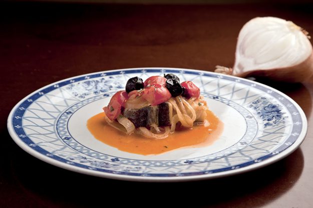 INGREDIENTI per 4 persone g. 800 di fave secche già spellate, 1 cipolla media rossa di Tropea, 4 pomodorini piccoli Pachino freschi lavati ed asciugati, 4 filetti di spigola fresca, g. 20 di…