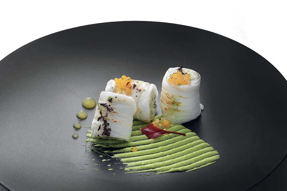 INGREDIENTI kg. 1 di calamari Per il ripieno: g. 200 di quinoa, g. 100 di mozzarella, g. 30 di lattuga di mare, cl. 20 di olio extravergine d’oliva, sale q.b. Per la crema…