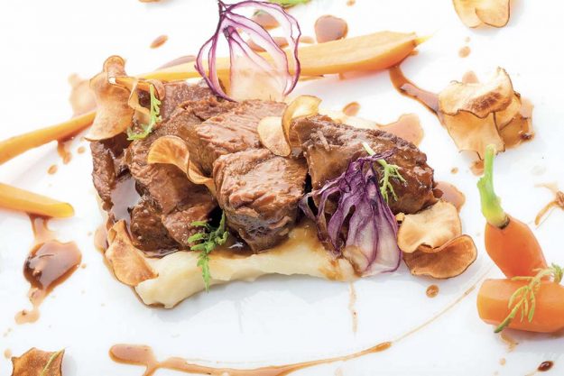 INGREDIENTI per 4 persone • kg. 1 di guancia di manzo • g. 100 di carota • g. 100 di sedano • g. 50 di cipolla dorata • g. 50 di porro •…