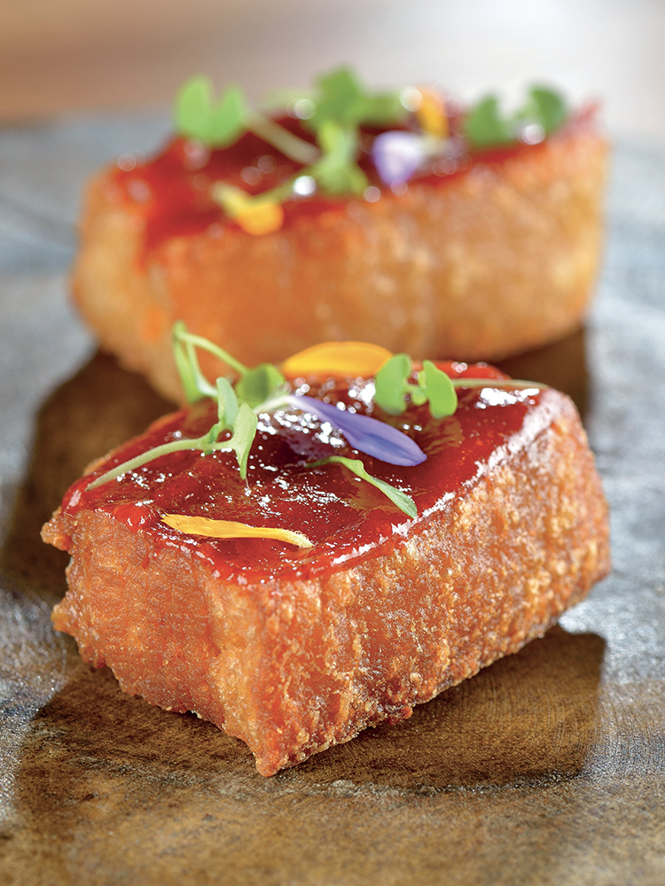 INGREDIENTI per 4 persone • g. 600 di controfiletto di manzo di razza romagnola tagliato in 4 fette • 4 topinambur • g. 200 di fegatini di pollo • g. 200 di fondo…