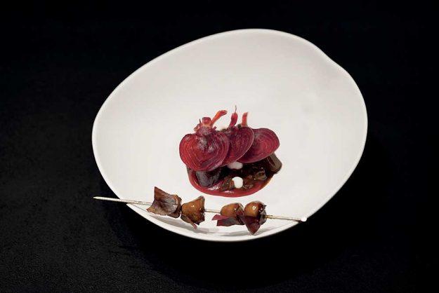 INGREDIENTI per 4 persone • g. 250 di rigaglie di pollo • 8 barbabietole crude/sode • ml. 200 di panna • 2 limoni • g. 150 di fondo pollo ristretto • acetosella fresca…
