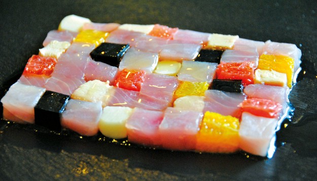 INGREDIENTI kg. 1 di ricciola pulita, 1 arancia, 1 pompelmo, 40 noci Macadamia, g. 200 di patè di fegato grasso di oca. PROCEDIMENTO Tagliare a cubetti il pesce. Tagliare la frutta, il paté…