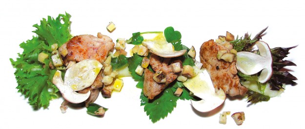 Faraona con crema di patate al limone e salsa di fiori INGREDIENTI per 4 persone 4 petti di faraona g. 200 di patate 1 scorza di limone g. 250 di latte g. 100 di…