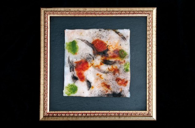 INGREDIENTI 2 calamari di g. 700 cadauno, pistilli di zafferano, carbone di melanzane, paprika, sale. Pulire i calamari, privandoli delle pellicine che hanno su ambo i lati. Batterli con l’aiuto di un mattarello.…