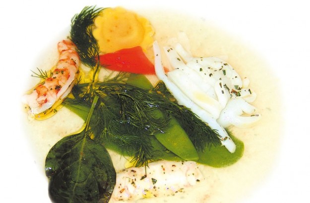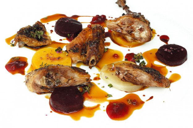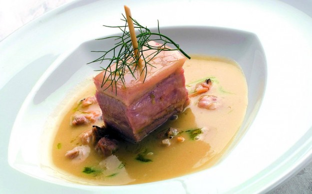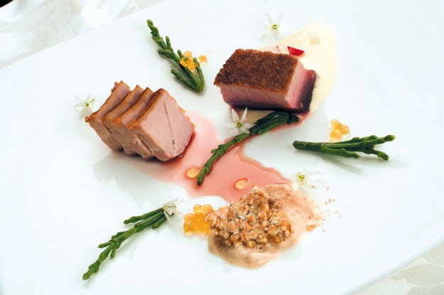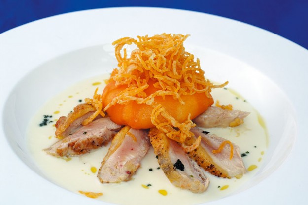 Cupola di zucca gialla con petto di faraona e salsa di burrata