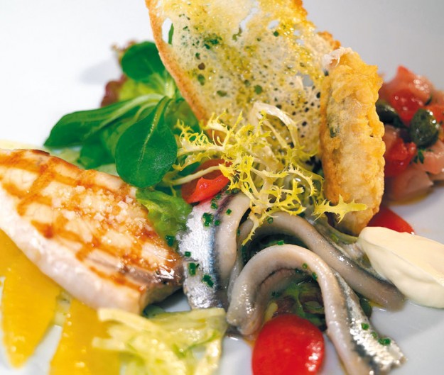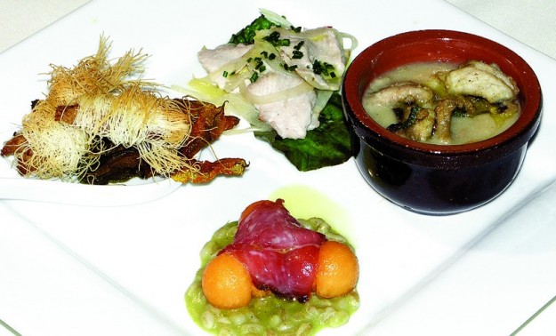 E’ una degustazione di quattro tipi di pesce azzurro, accompagnati da oli provenienti da quattro regioni d’Italia. Prosciutto di tonno e melone su passatina di piselli e farro all’extravergine siciliano Ingredienti per 4…