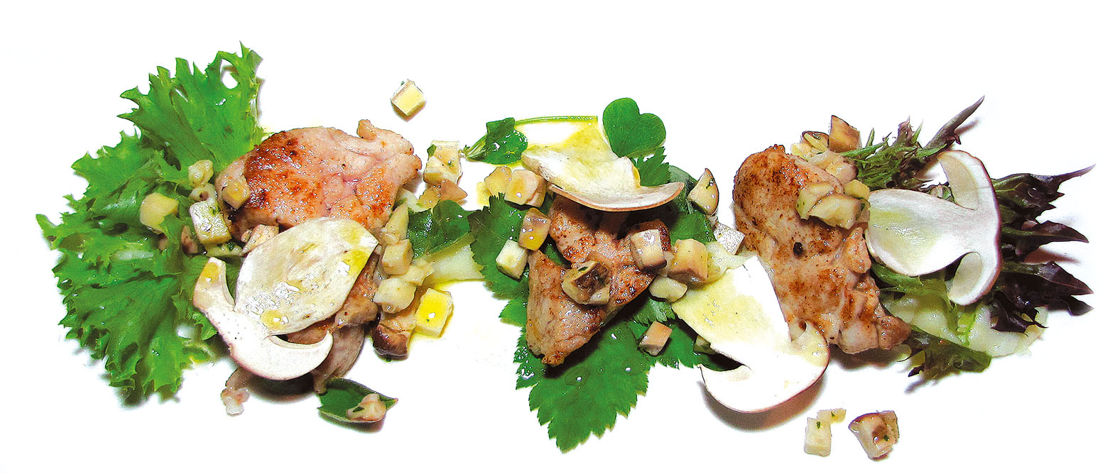 Per guarnire: porcino crudo a fette, insalata lollo frisee, valeriana.
