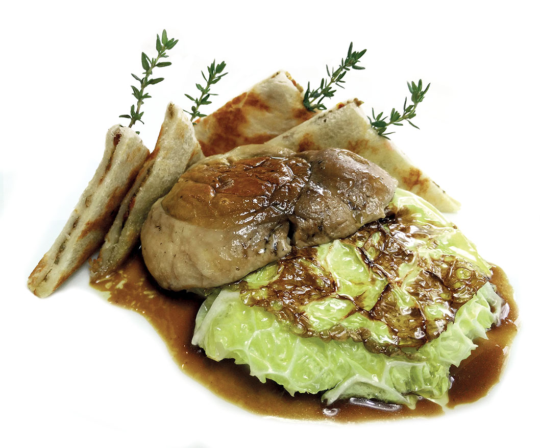 Procedimento: tagliare la verza molto sottile. Versare in una padella di alluminio un goccio di olio e stufare la verza aggiungendo acqua poco alla volta. In una padella antiaderente versare un goccio di olio e cuocere le cappelle dei funghi a fiamma molto bassa; verso la fine unire la salsa di soia. Farcire con i capperi le fette di pan carrè. Con l’aiuto di un mattarello stendere il pan carrè molto sottile. Metterlo in forno con un poco di olio e tostarlo. Comporre il piatto a piacimento con le tre preparazioni.