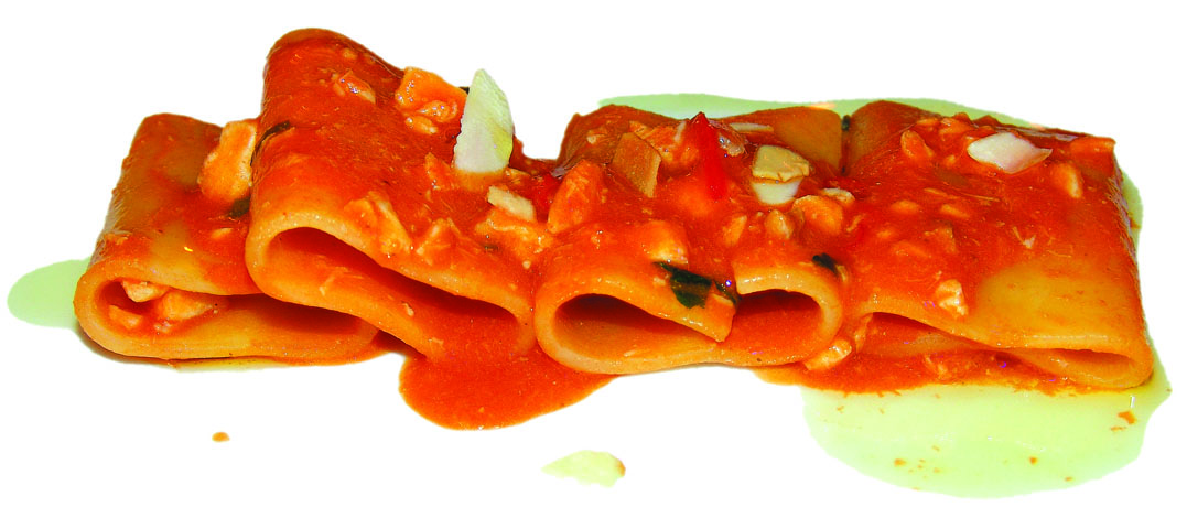 Preparazione: pulire e sfilettare come di consueto, tagliando poi la polpa a pezzetti piccoli. Tenere da parte. Nel frattempo, con le lische gli aromi e l’olio preparare un ragú, facendo rosolare bene il tutto. Bagnare poi con vino bianco, lasciare evaporare, aggiungere il pomodoro fresco tagliato e lasciare cuocere per alcune ore. Filtrare al colino e successivamente al setaccio e tenere da parte.Tagliare a listarelle i peperoni sottili e scottarle in padella antiaderente. In un tegame con olio e aglio aggiungere la polpa a pezzetti e salare, aggiungere quindi il ragú di pesce, poi i peperoni scottati e lasciare cuocere per 2 minuti. Nel frattempo cuocere la pasta bene al dente, aggiungere alla salsa, mantecare il tutto, profumare con la menta e servire ben caldo.