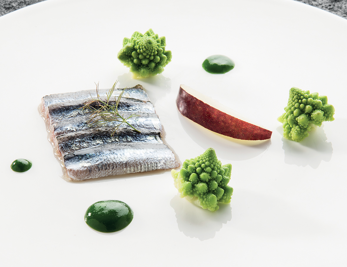 Cospargere i filetti di sardine con sale e zucchero, unire la scorza di limone e di arancia, coprire con la pellicola e lasciare in salagione per 6 ore. In una padella arrostire il cavolfiore tagliato in oezzi con l’olio e il sale. Far raffreddare. frullare le prugne con il Marsala. Disporre le sardine lavate al centro dei piatti, poi il cavolfiore, le prugne e il pane tostato.