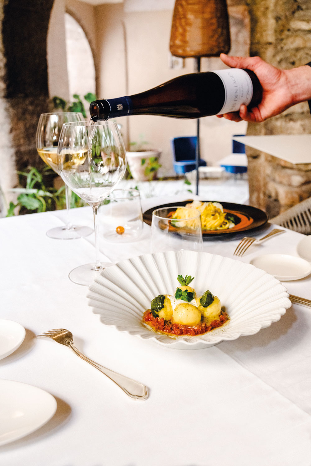 Col tempo è diventato un organismo vivo, ampliato “per cerchi concentrici”: prima la gradinata verso Marina Piccola, poi un’ampia ed elegante sala contemporanea con una cantina imponente (curata da anni da Gaetano), infine un pastry lab dedicato alla sperimentazione quotidiana. Questa crescita, tuttavia, non ha tradito il principio originario: ogni ospite deve sentirsi a casa, perché Aversa non considera il ristorante un dispositivo scenico ma un luogo di relazione.