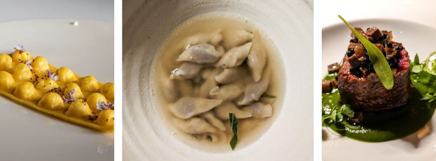 La Val Tidone entra nei piatti anche attraverso l’orto di proprietà e le stagioni: radici, erbette spontanee, verdure antiche, legumi, cereali e frutta definiscono una cucina vegetale che nasce dal luogo e dal suo ritmo naturale in una sorta di foraging ante litteram.