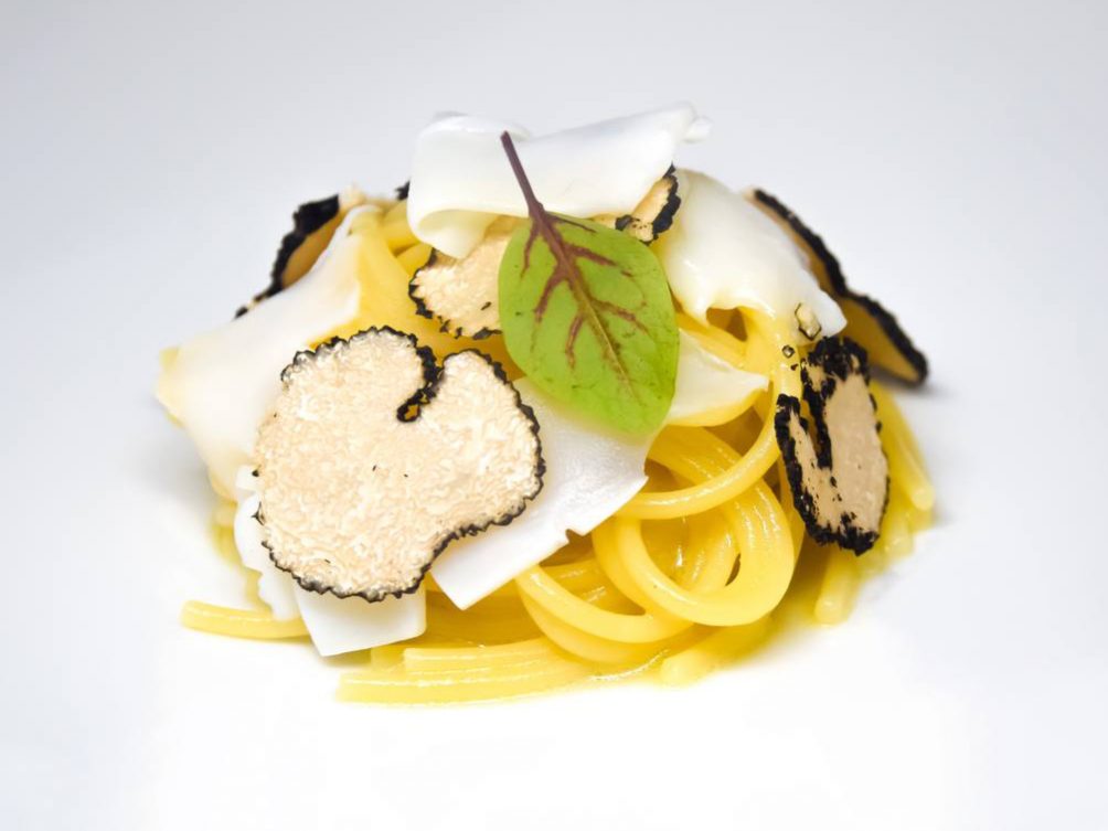 Ingredienti per 4 persone g. 320 di pasta kg. 2 di carcasse di coniglio g. 300 di seppia pulita g. 30 di tartufo nero lt. 1 di vino bianco rosmarino q.b. g. 50…