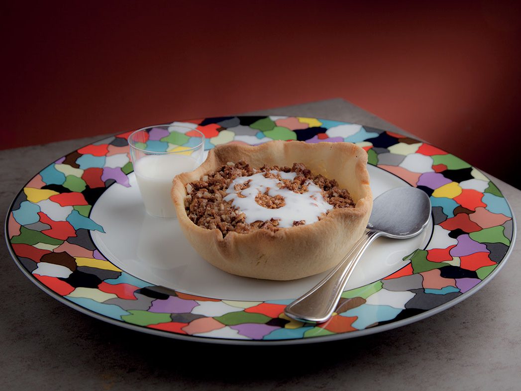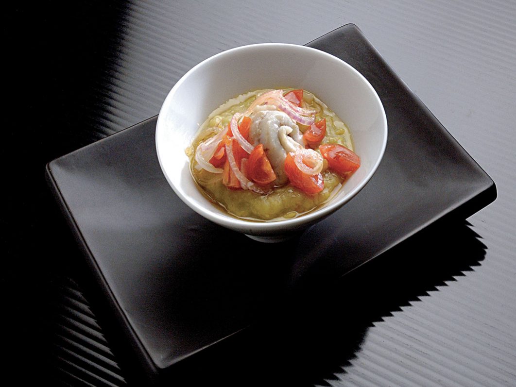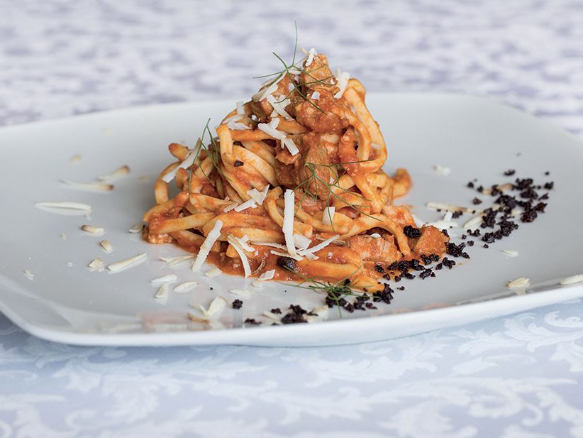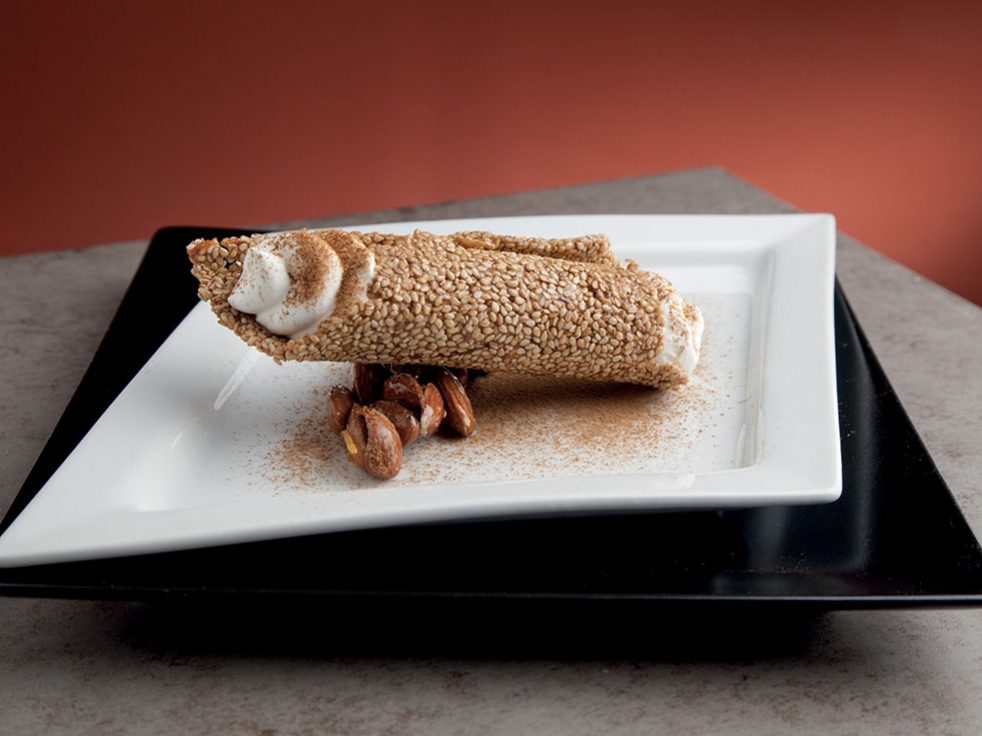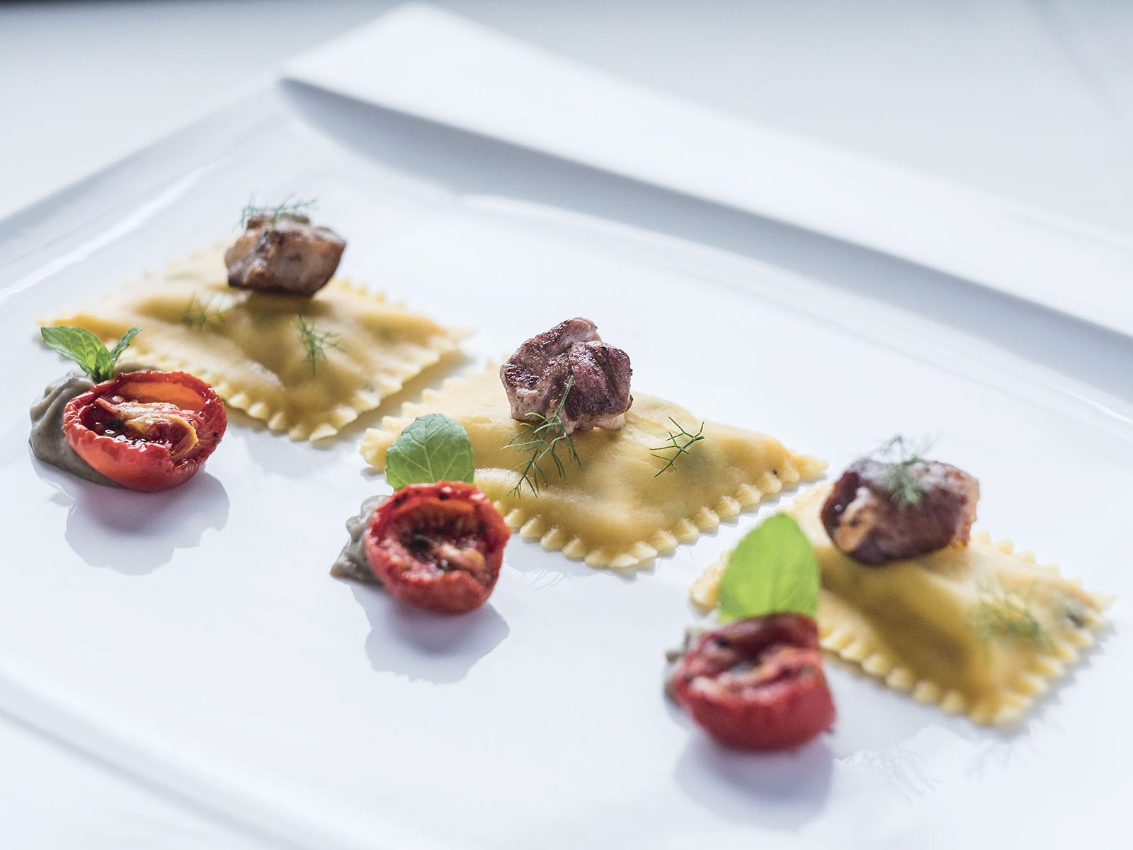 Bauletti® alla mediterranea, con agnello e finocchietto selvatico, salsa di melanzane bruciate, pomodorini confit e menta