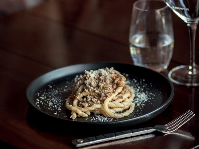 Ingredienti per 4 persone • g. 320 di fusilloni al ferretto • Gerardo di Nola • g. 300 di spalla di capra macinata grossa • ml. 100 di fondo di capra • g.…