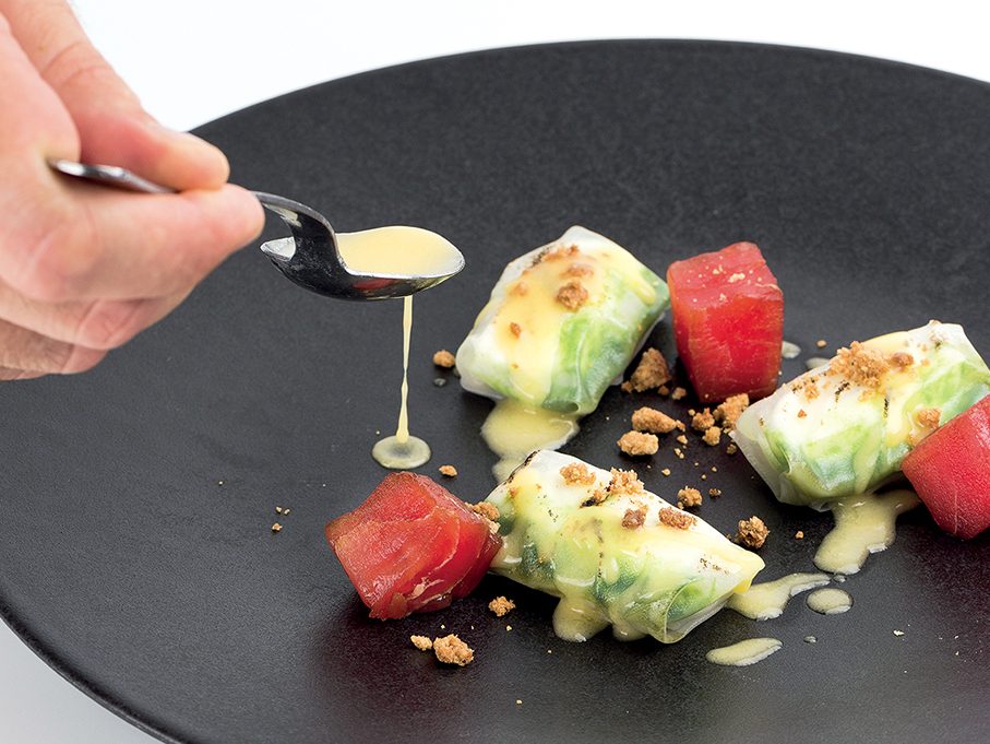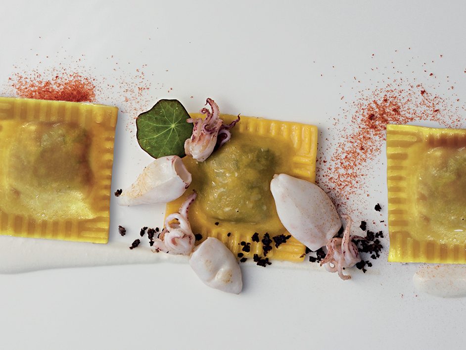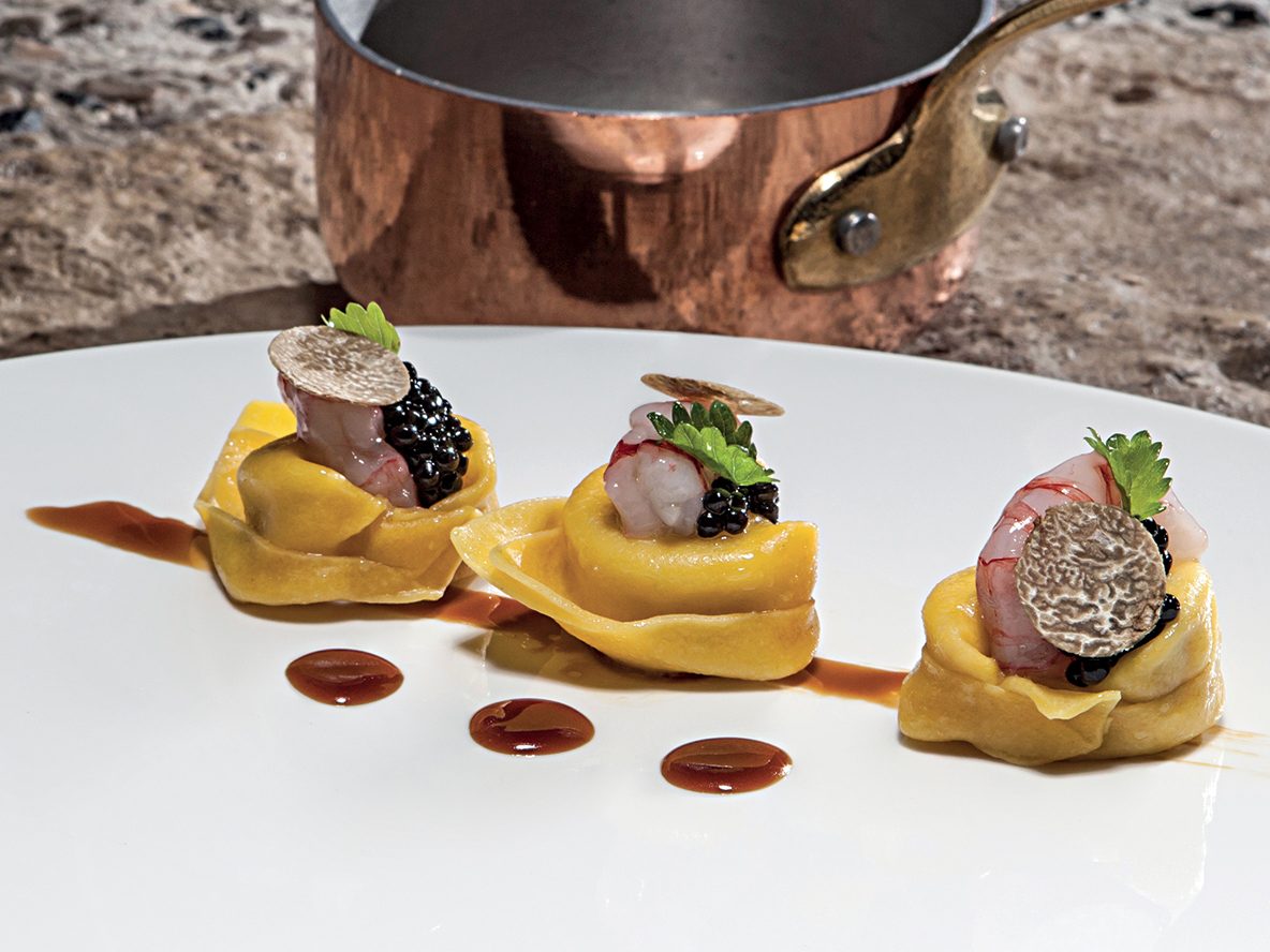 INGREDIENTI per 10 persone 40 Panciotti con cappesante e gamberi dei Mari del Nord Divine Creazioni Surgital, 30 gamberi rossi, g. 700 di stracciatella di burrata, g. 100 di salsa di melone, g. 50 di…
