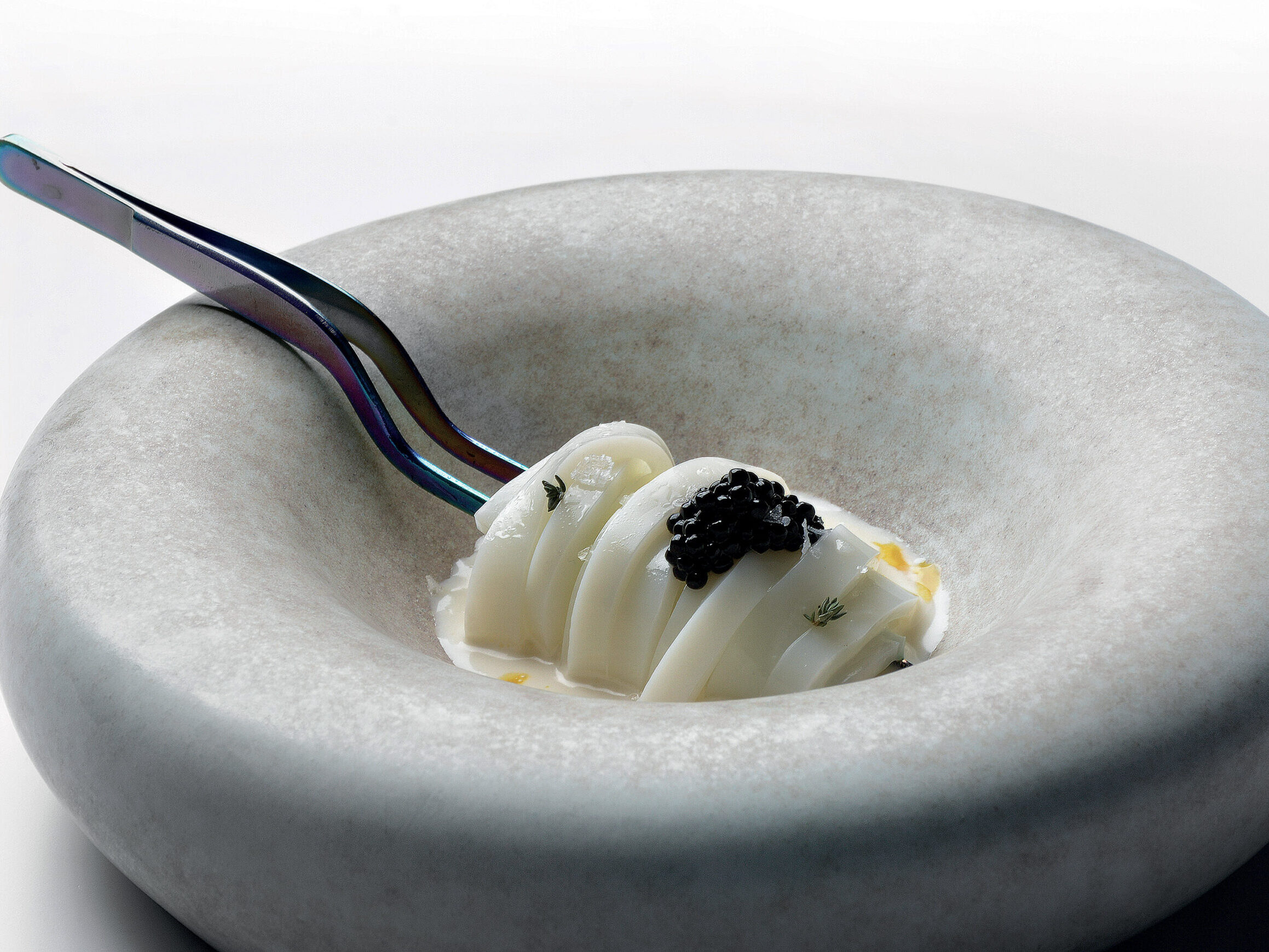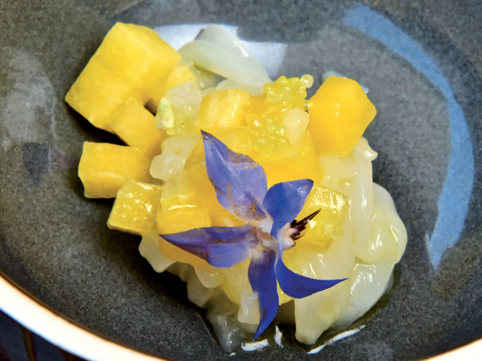Insalata di seppia con pesca, limone caviale