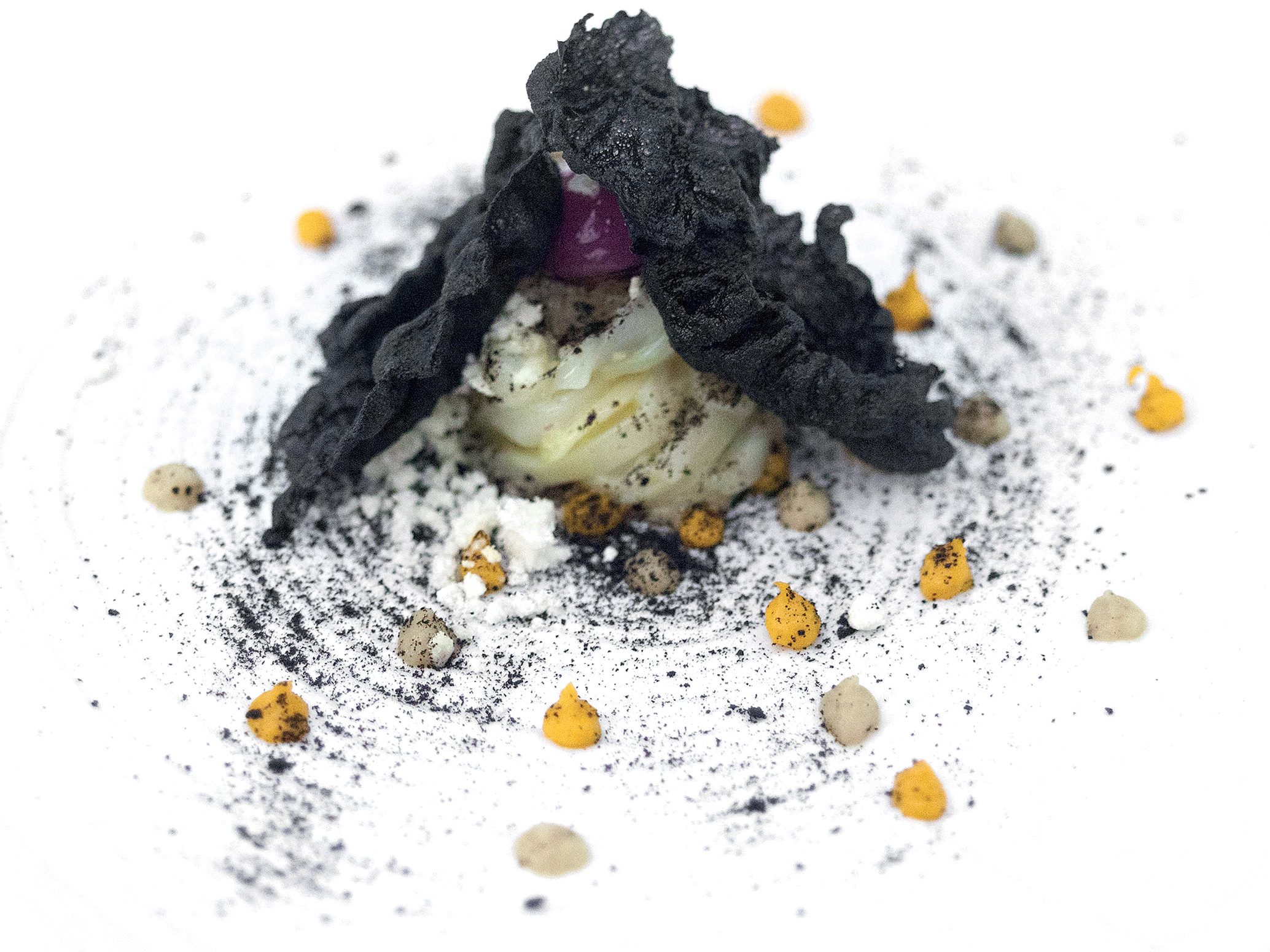Mescolare 200 grammi di acqua con 120 grammi di albume cotto precedentemente in acqua bollente e aceto, quindi stendere su una placca. Inserire la placca nella macchina sottovuoto e procedere alla disidratazione del…