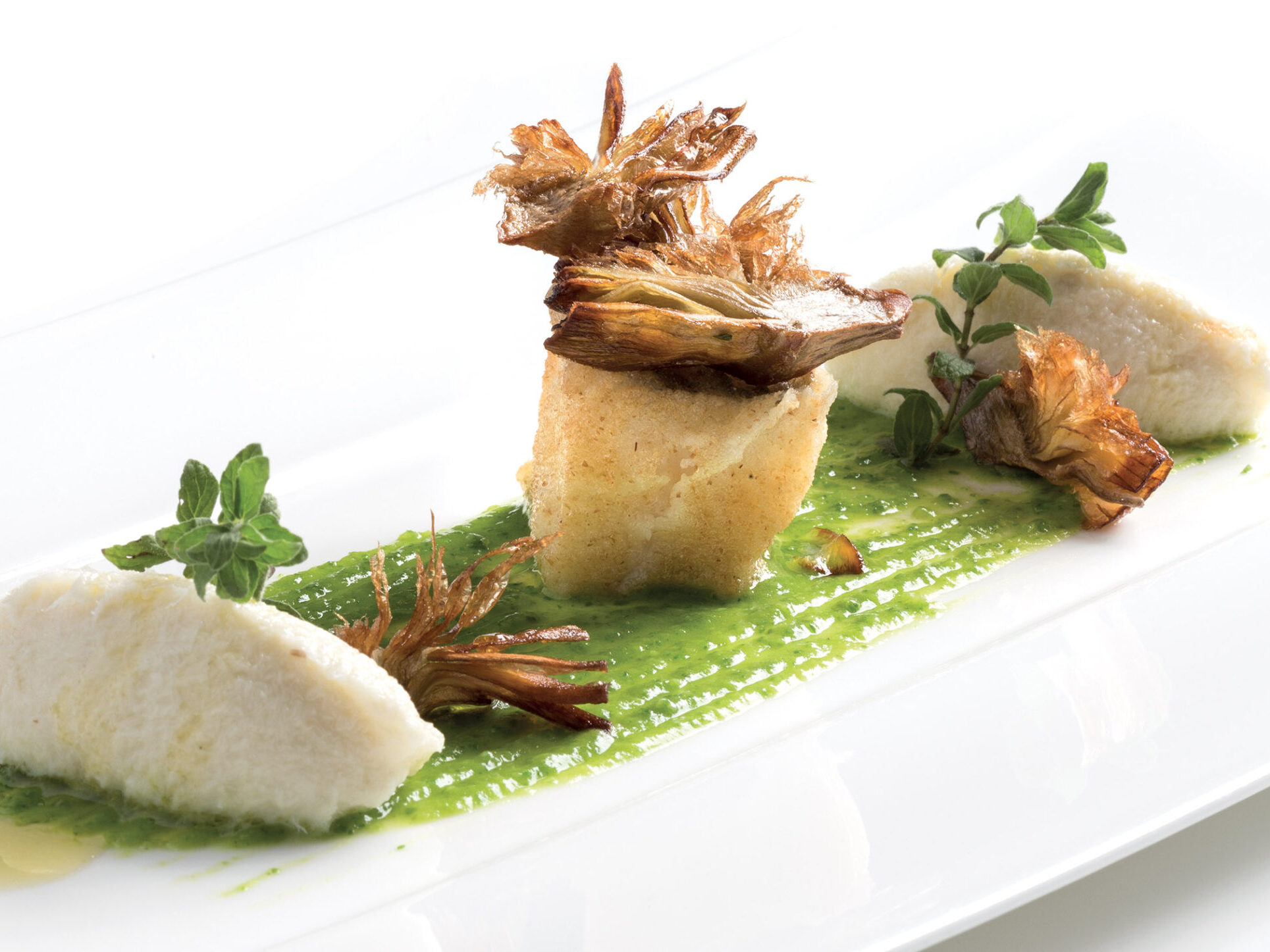 INGREDIENTI per 10 persone kg. 1,8 di filetto di baccalà Morro kg. 0,5 di pisellini g. 400 di carciofi crema di latte q.b. 1 carota 1 costa di sedano 1 cipolla piccola 1…